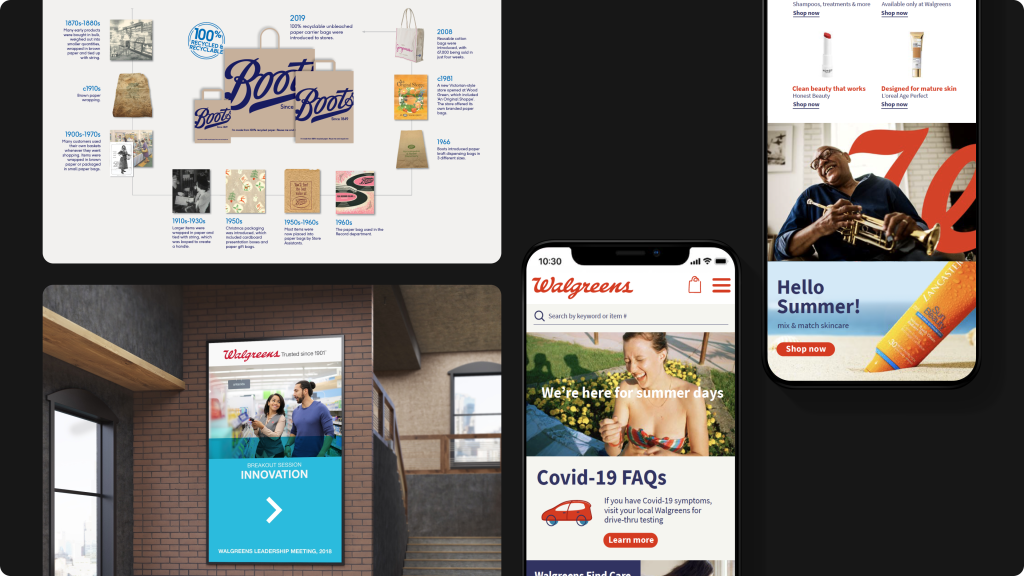 At Walgreens Boots Alliance, I worked on global beauty, health, and wellness brands like No7, Liz Earle, and Soap & Glory. The work was about designing for trust at scale, building modular brand systems and campaigns that could work across 12+ markets, while still feeling human, clear, and relevant in highly regulated environments.